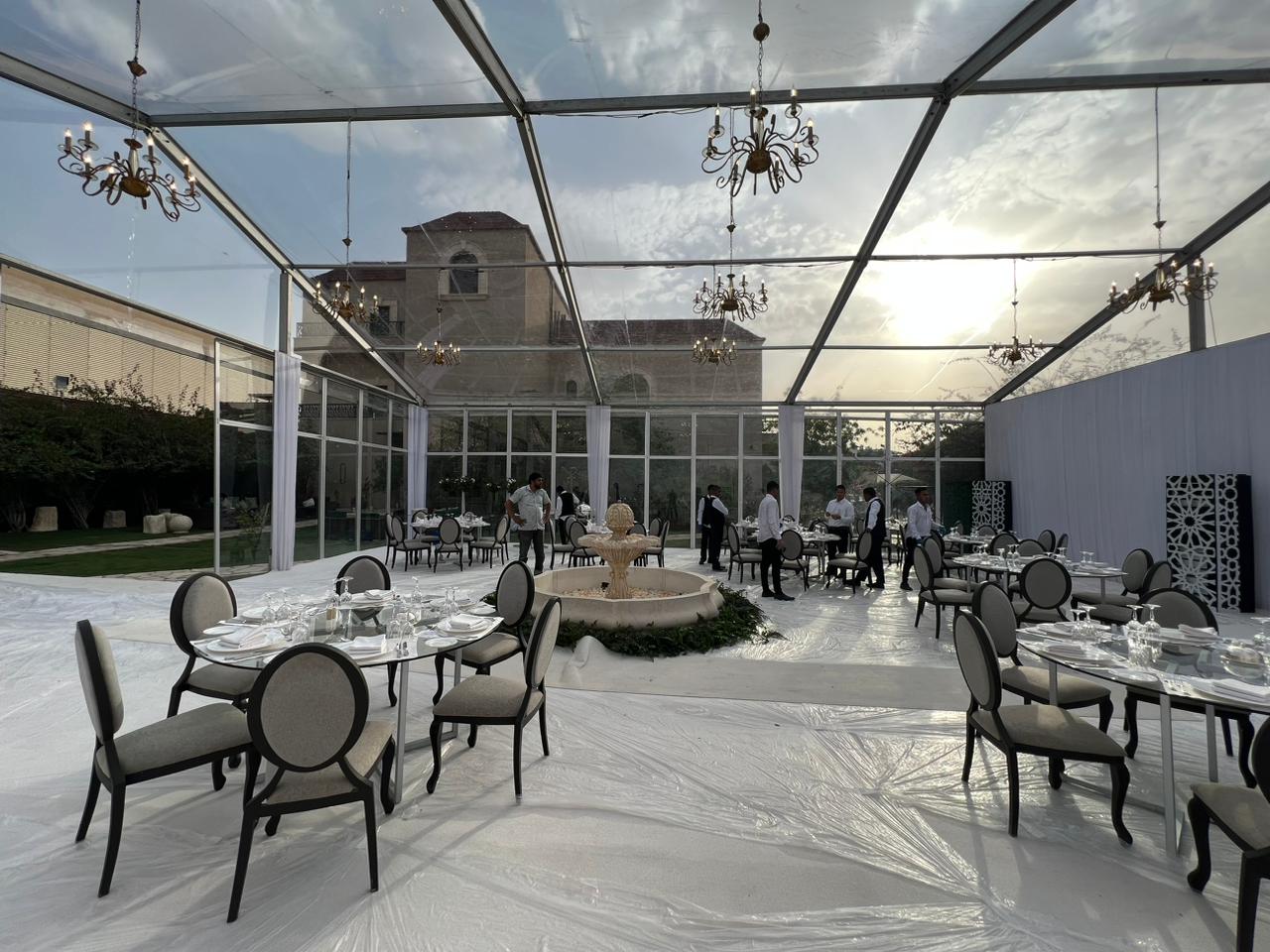 إضافة إلى كونها فسيحة وراقية، توفر الخيام الأوروبية أجواء رومانسية مثالية لحفلات الزفاف، حيث يمكن تزيينها بالإضاءة والديكورات لتتناسب مع أي طابع يريده العروسين.